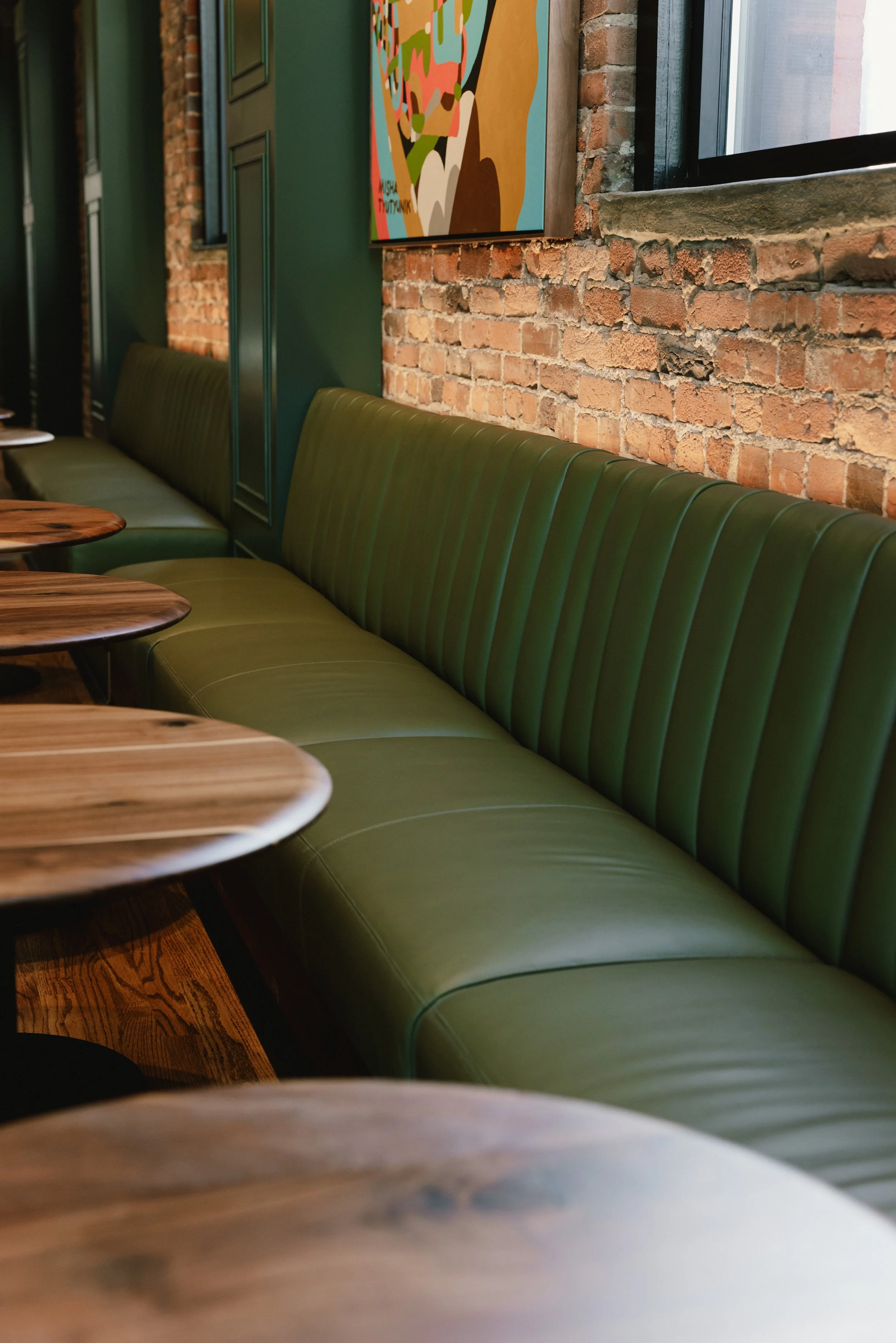 Cummins Station celebrates Nashville’s industrial heritage through a sensitive adaptive‑reuse cafe located within the landmark 1907 warehouse. With floor‑to‑ceiling glass, original wood floors, and exposed brick walls, the design uses a simple, sophisticated palette—walnut, green and tan leathers, and brass accents—to enhance the building’s character while creating a warm, inviting café experience. Thoughtful material choices and refined detailing shape a welcoming neighborhood destination that feels both historic and contemporary.